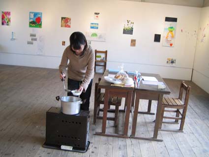 来場者ならびに自分たちもスープであたたまる。
